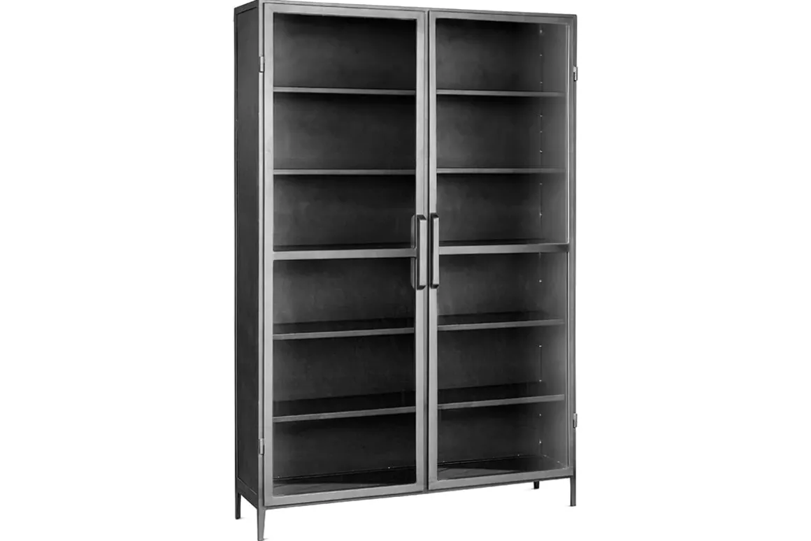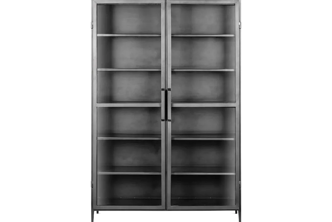 This sturdy and generously sized cabinet is ideal for displaying your favourite household items, such as glassware or crockery. Well-constructed from hard-wearing iron with clear glass-fronted doors, its pared back utilitarian design suits almost any interior. Its size ensures it’s an eye-catching addition to your home while the dark grey tones add a sophisticated note. This is a truly timeless piece which is both practical and stylish.