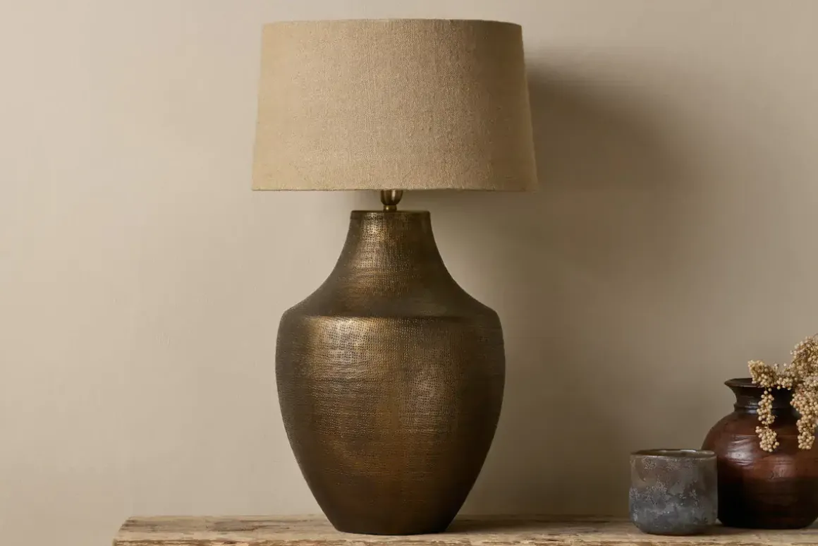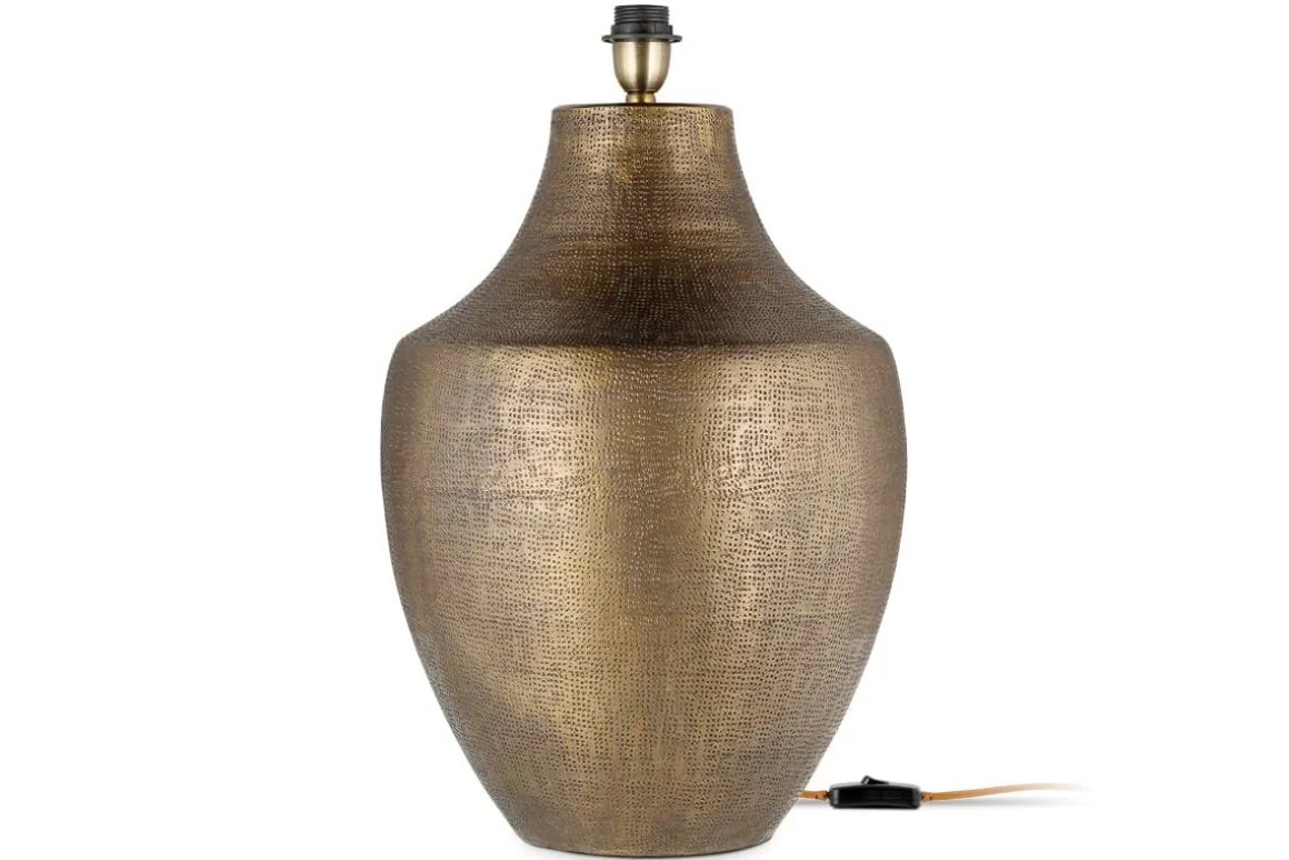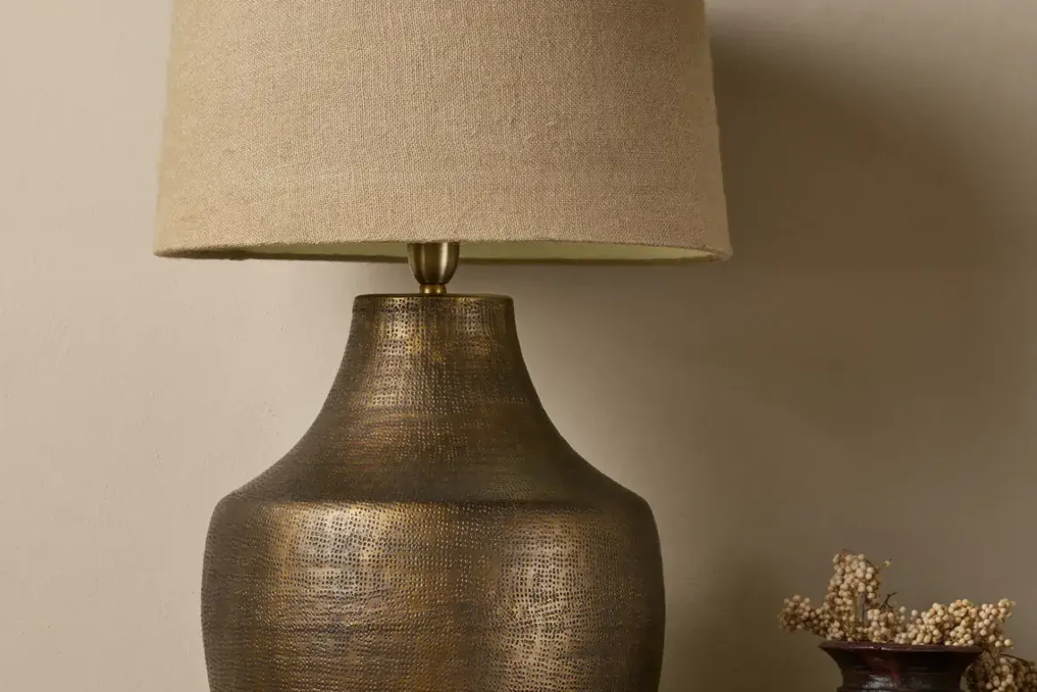 Enhance your living space with our impressive Tanda Table Lamp. Its delicate hand-etched design beautifully softens the traditionally harsh look of metal, while the rounded shape and antique brass finish add a touch of elegance. Perfect for making a sophisticated yet subtle statement in your living space, this lamp makes a wonderful addition to any home.