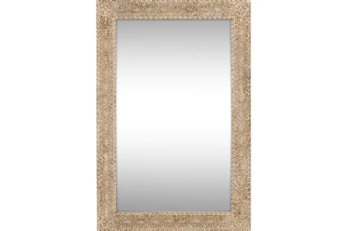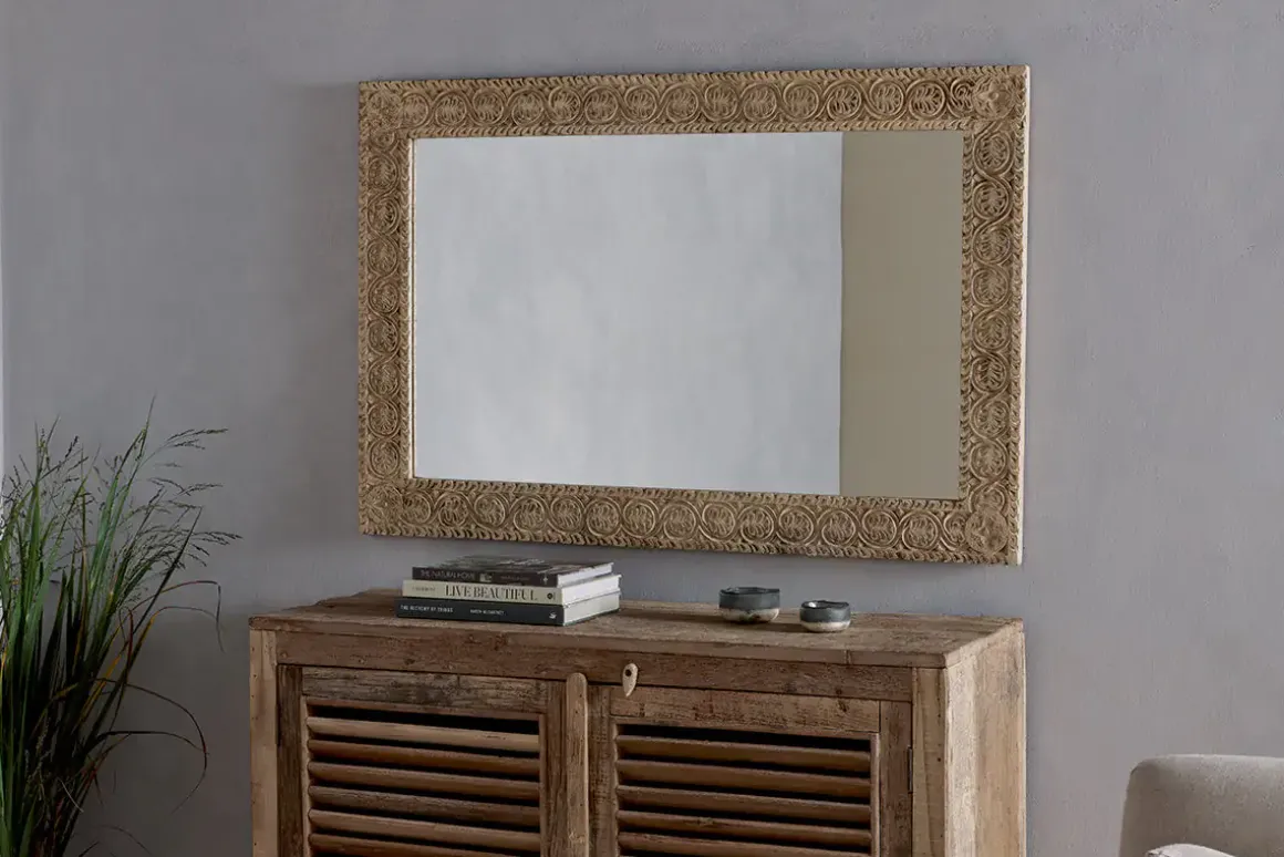 Expertly crafted from hand-carved mango wood, our Tannir mirror is an elegant blend of art and function. With the flexibility to be hung both horizontally and vertically, it adds character and texture to any living space. The design, inspired by Indian antique pieces, is strikingly beautiful as a decorative object in its own right.