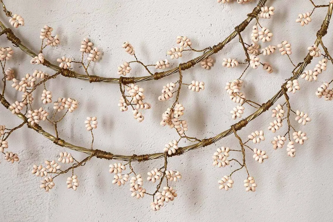 Tanu Layered Mango Wood Beaded Wreath – Brass & Natural