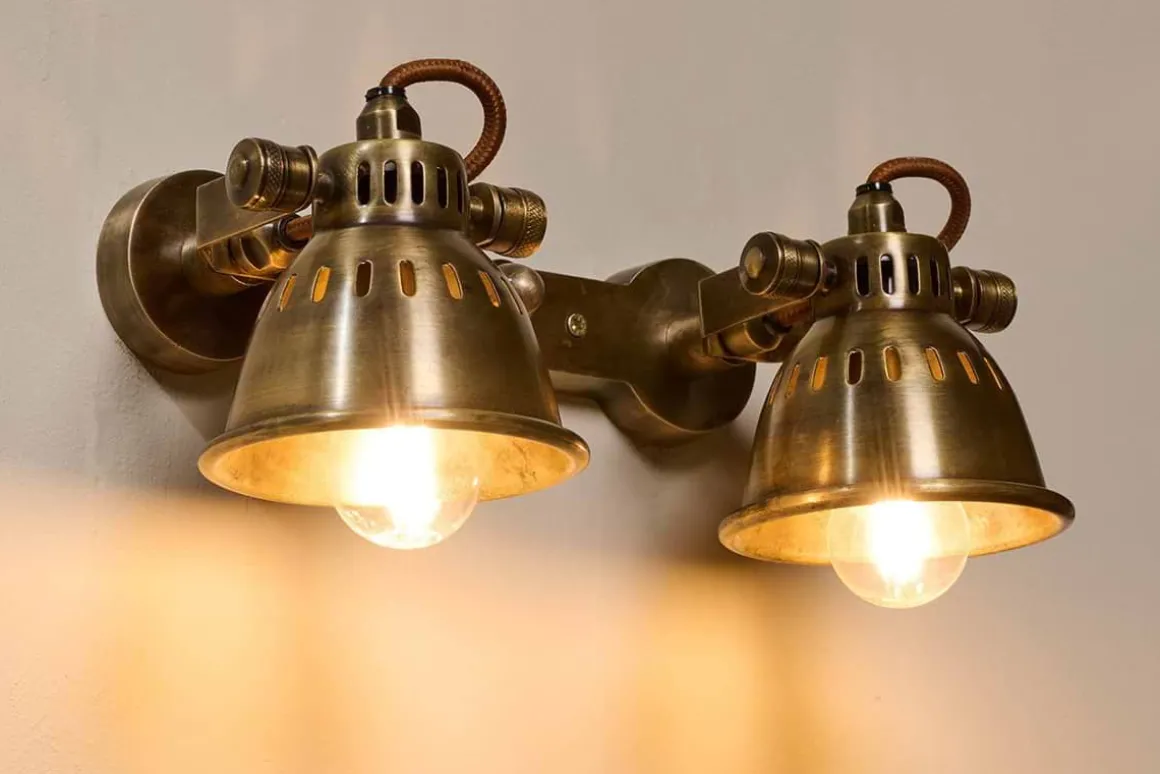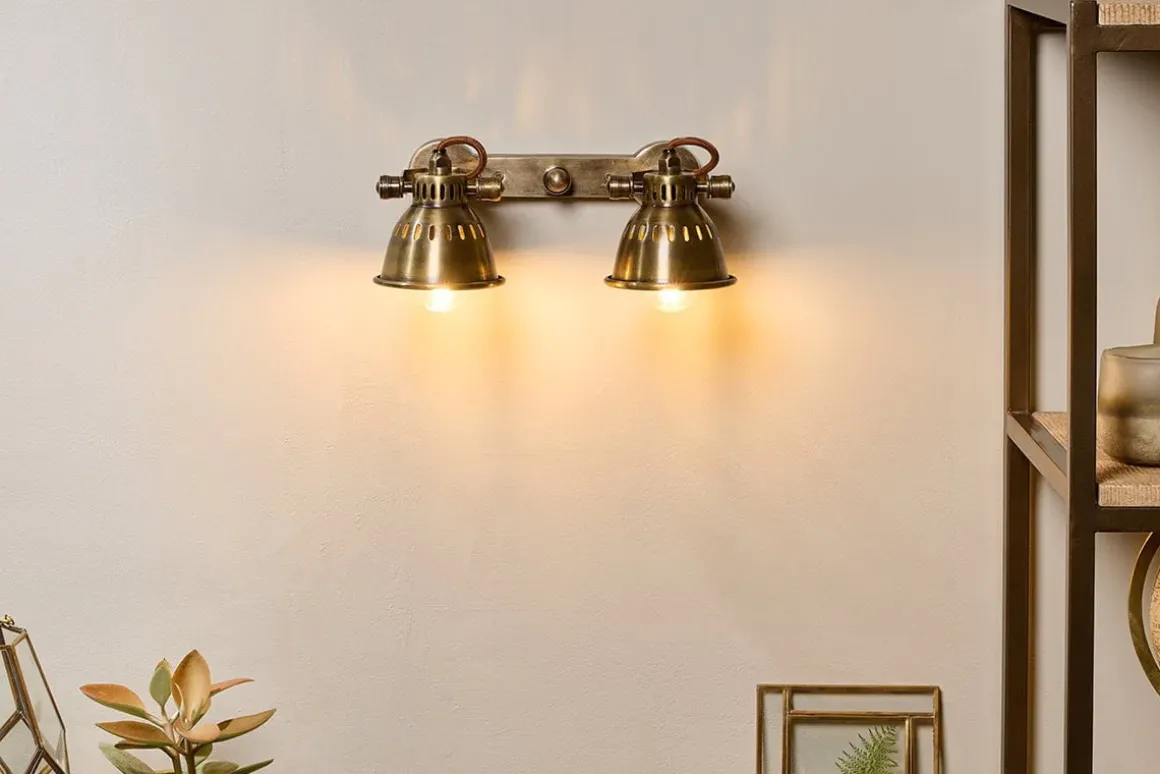 We love the rustic, industrial look of these brass spotlights. Their brass bar attaches easily to a ceiling or wall and their flexible head allows you to focus the light.