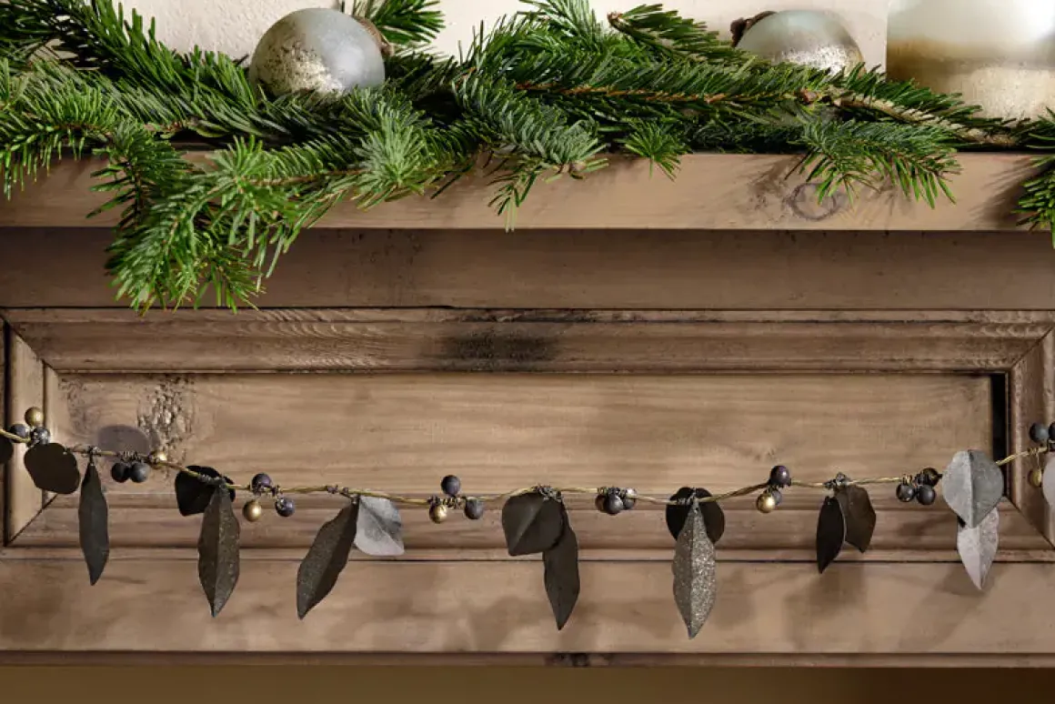 Rustically elegant, these attractive garlands are made up beautifully crafted metal leaves and berries, carefully displayed around a brass wire frame.