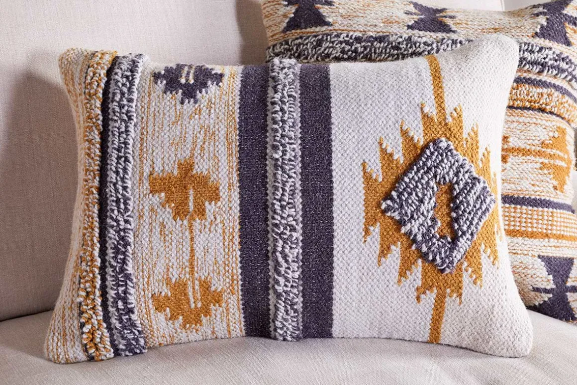 The tactile mix of wool and cotton combine in these eye -catching Tussi Sia cushion covers. The Ikat design is given a warm earthy aesthetic with threads of mustard, natural and black.Our feather cushion inners will accompany your cushion cover perfectly. Please note, the size of the cushion inner will display slightly larger than our cushion covers to allow for a plump finish when put together. Our rectangle cushion inner pairs perfectly.