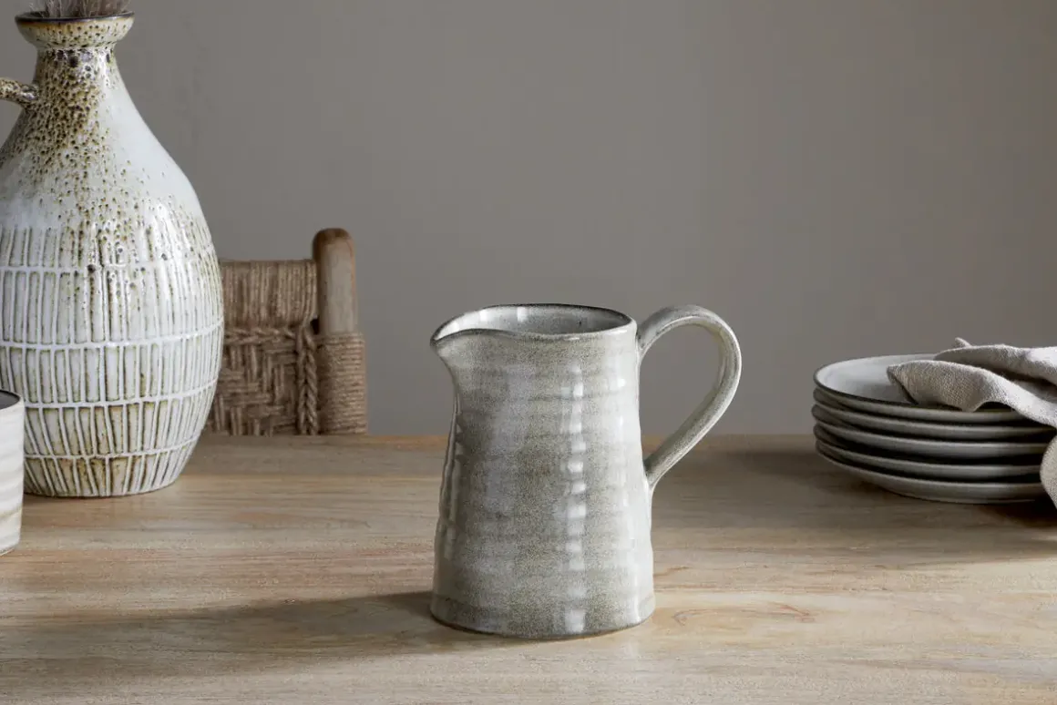 This jug introduces a thoughtful update to our tableware collection. Finished with a richly layered reactive glaze, each piece displays subtle variations in tone and texture, making every piece unique. Designed to bring warmth and depth to everyday table settings, it pairs beautifully with matching dinnerware and serveware from the collection for an effortlessly elevated dining experience.