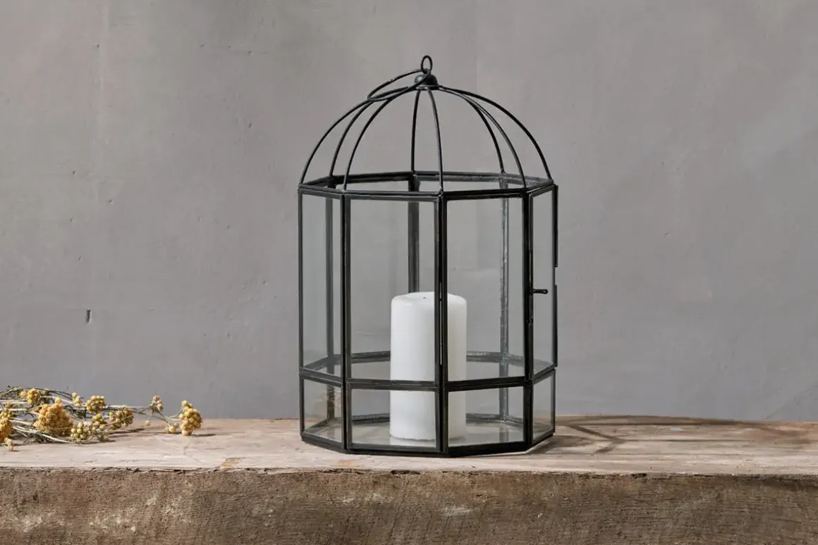 An exquisite blend of powder-coated metal and recycled glass, our Visranti lantern design draws inspiration from the elegance of birdcages. Crafted with finer metalwork, it offers a delicate touch compared to our traditional lanterns. We love it for creating a warm ambiance in your garden during summer evenings. Please note, it is not designed to be left outdoors. Style with our pillar candles.