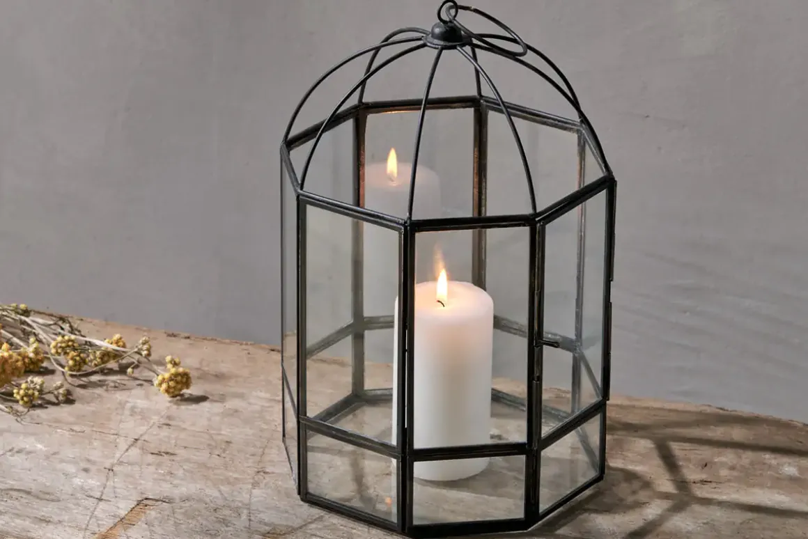 To care for your lantern, we recommend regularly wiping with a soft, dry cloth to prevent the build up of dust or dirt. We recommend a microfiber cloth in the circular motion for the glass. To remove excess wax, use warm water with a mild dish soap, be sure to dry immediately and do not soak. Indoor use only. Please position the candle securely and ensure that the flame is not directed at the glass. This product will get hot in use. Keep out of reach of children. Wait until fully cooled before handling. Never leave a burning candle unattended.