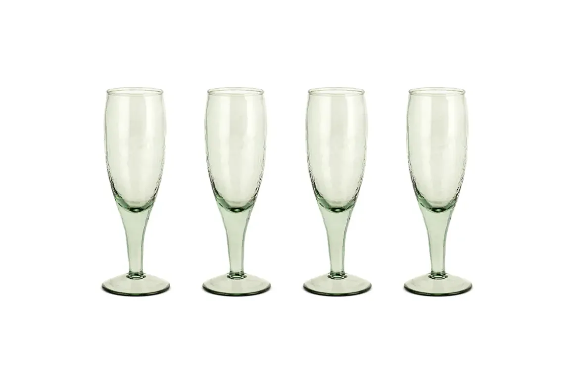 Yala Hammered Champagne Glass – Sage Green (Set of 4)