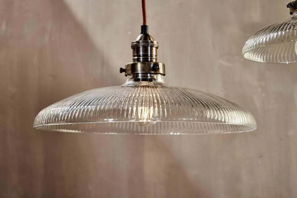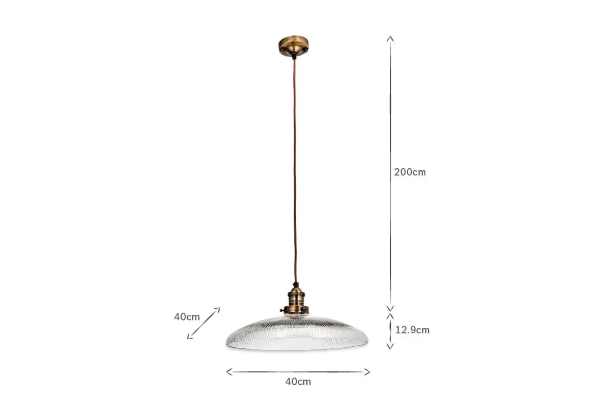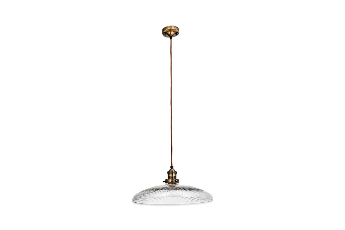 The timeless design of our Zowie Pendant Light combines a ribbed glass shade with handcrafted brass fittings. The shallow shade styles well over a table or kitchen island. The ribbed detailing of the glass shade, not only adds an attractive design detail but helps diffuse the light.