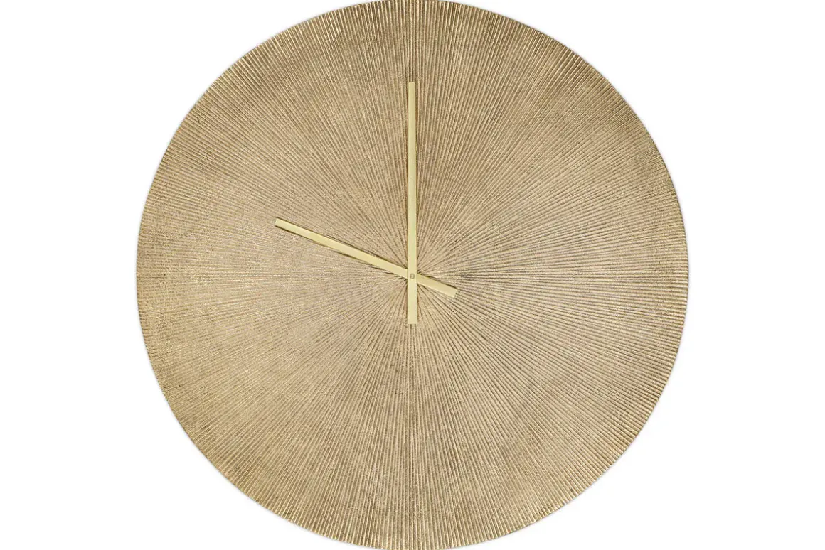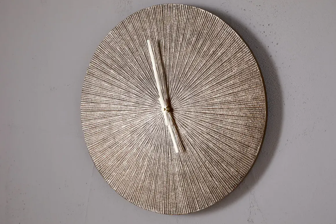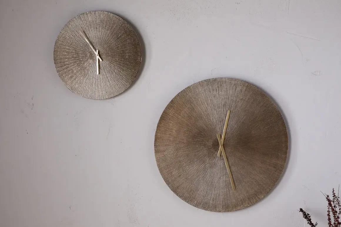 Keep time with our stylish Zuwena wall clock, which adds an instant touch of understated glamour to any room. The antique brass finish on the face is elevated by a subtly etched design, adding texture and depth to its minimalist form. Slim metal hands complete the simple, abstract look, making it a striking piece of wall art in its own right. Whether placed in a neutral, pared-back setting or on a richly coloured wall among other found objects, it brings quiet sophistication to any space.